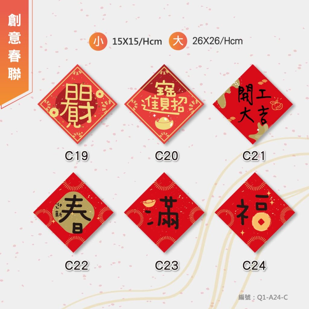 C-方形春聯 大(26x26cm) $150/張 小(17x17cm) $120/張